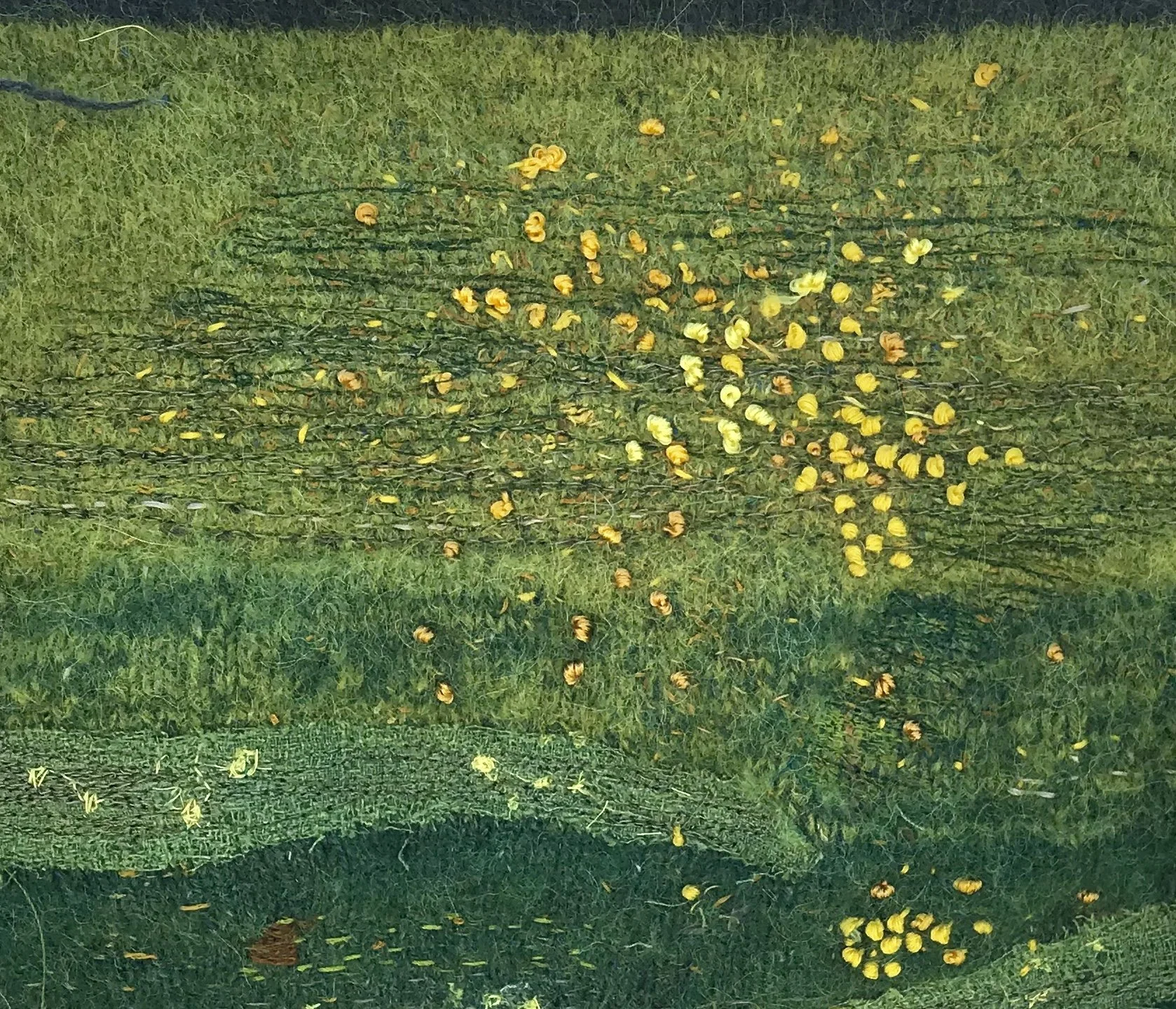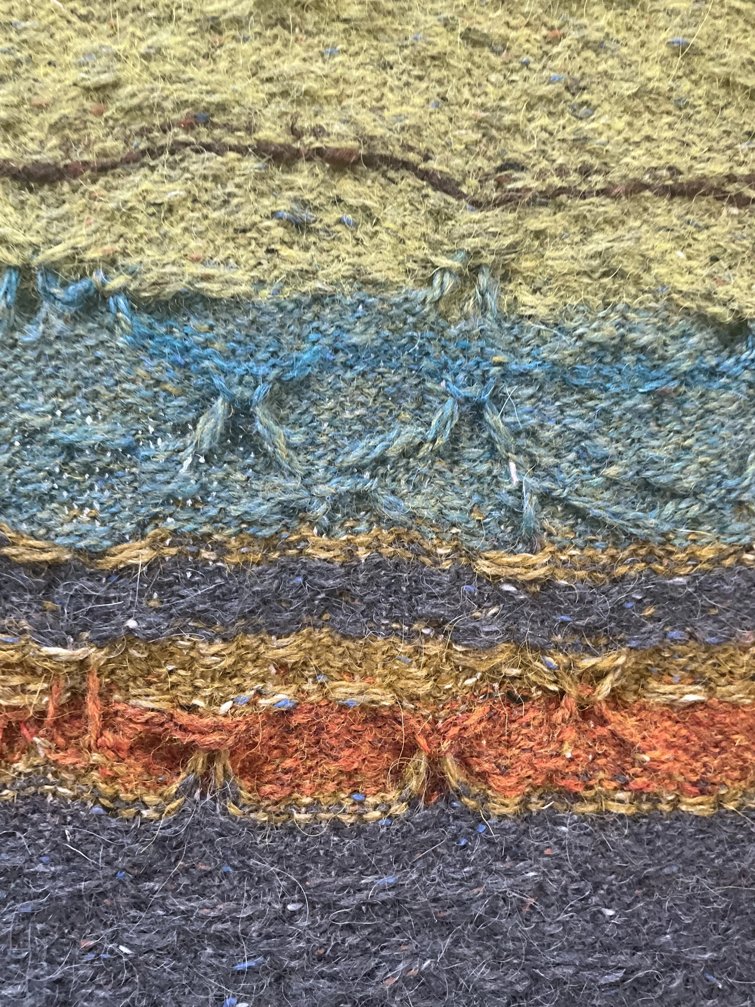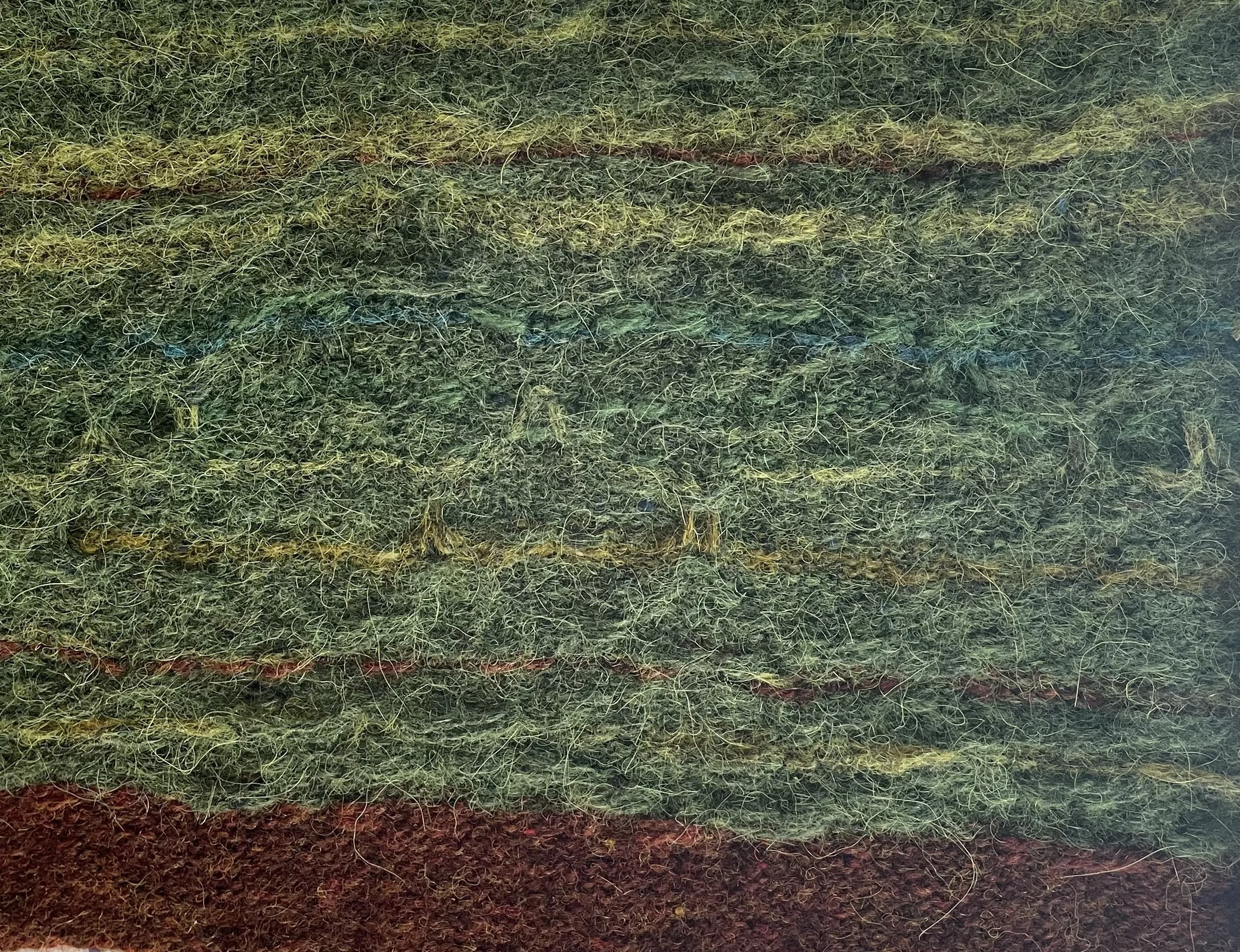 I generate ideas by being in a landscape. I am drawn to wild, expansive scenery be it moors and fells or rugged coastline. Colour is almost always the primary draw and the drive is to capture the feelings aroused in response to the scenery. Thoughts and ideas are explored through sketchbook work and sampling. Stitch and palette become the vocabulary to articulate my emotional response.